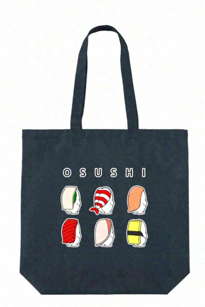 お寿司のシャリが主人公のキャラクター「おすしのシャリ生活」から新商品「ポーチ付きポケッタブルトート」が登場!